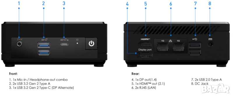 Оборудван с разнообразни интерфейсни опции, включително USB 3.2 Gen 1, HDMI изход и DisplayPort 1.4/USB-C 3.2 Gen 2, този мини компютър ви гарантира, че винаги сте свързани. Независимо дали е за професионална употреба или за мултимедийно удоволствие, MSI Cubi N ADL предлага гъвкавостта да свързвате множество устройства без усилие.