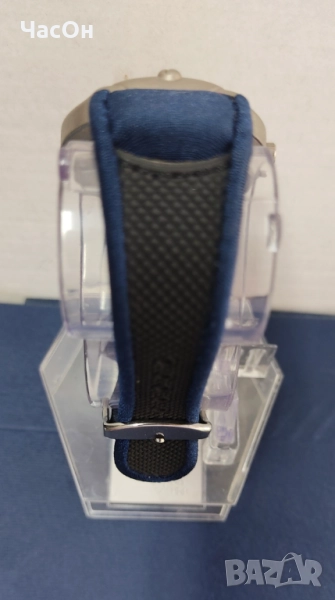 Много удобна и ефектна е каишката, съчетаваща син текстил, подобен на неопрен и черен силикон.