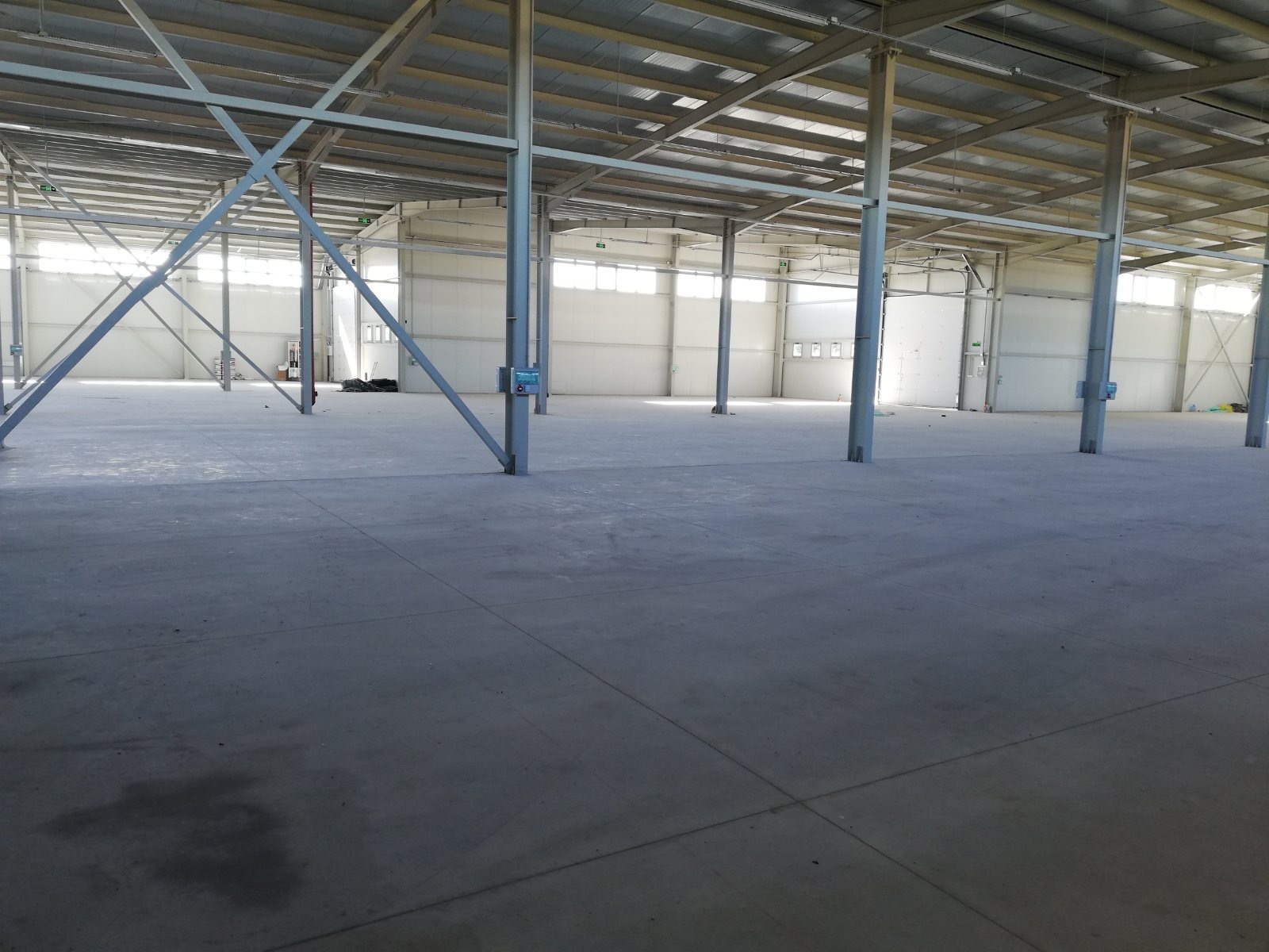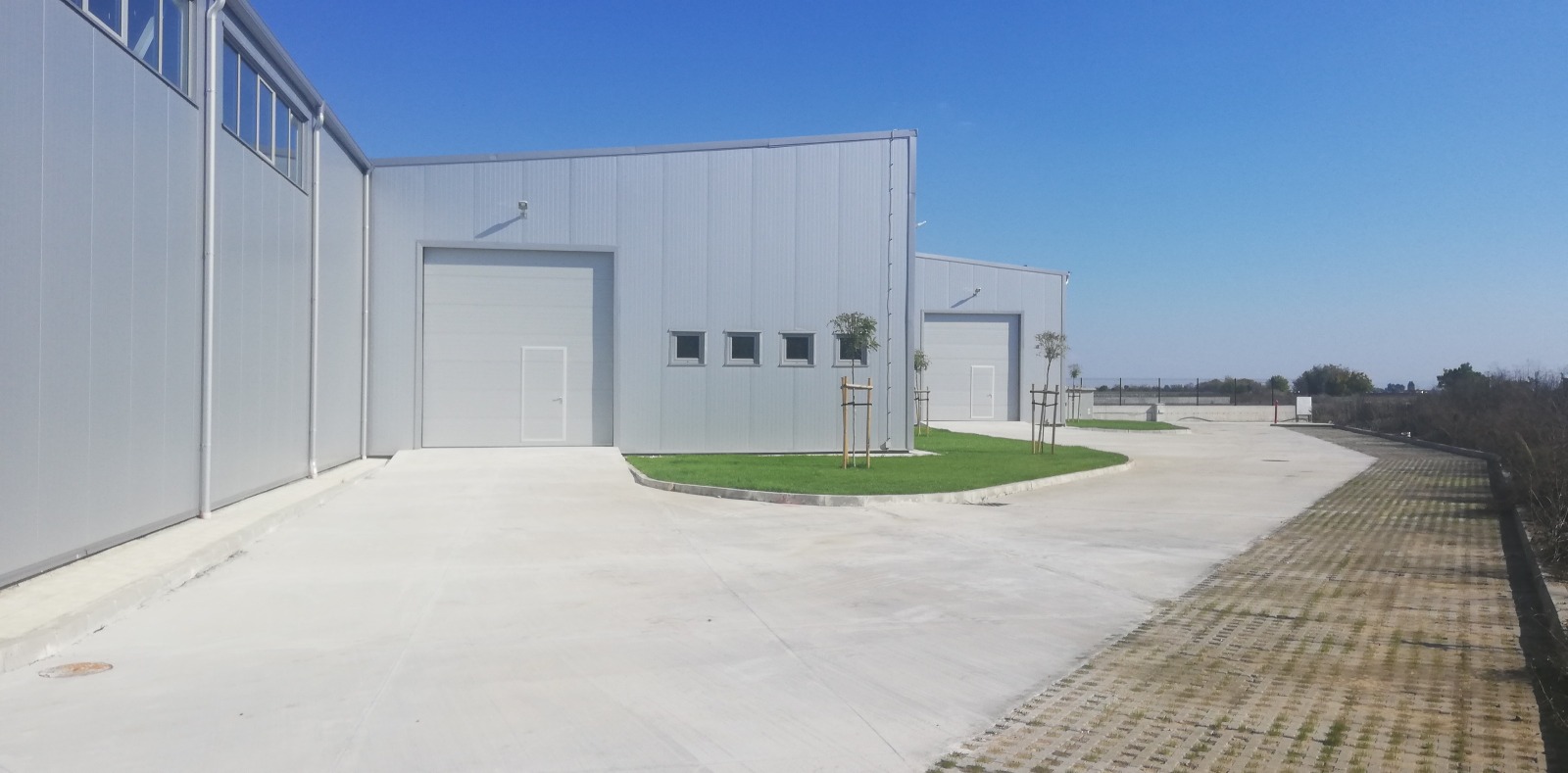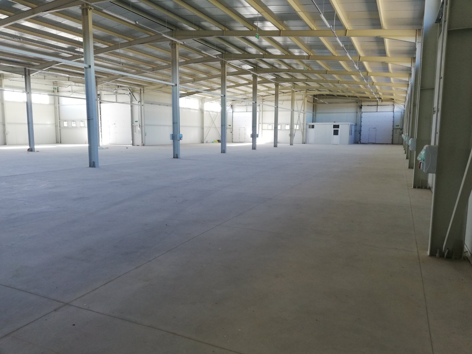 The building is made of steel supporting structure and walls of thermal panels. Wall windows on all facades. The height is 7.22 m to the ridge, clearance 5.60 m .The floor is made of polished concrete, the doors are automated with a height of 4.3 m. There are built-in household and sanitary facilities. The yard is concreted. The building is new, completed in 2021.
