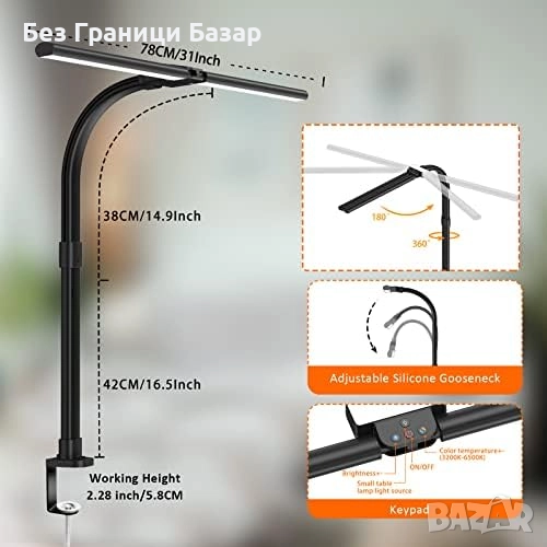 Нова Настолна LED лампа 25 светлинни режима регулируем ъгъл защита очи