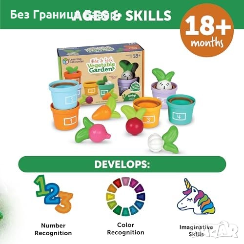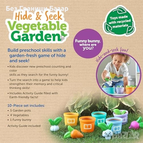Включва цветни зеленчуци, зайче и ръководство с игри