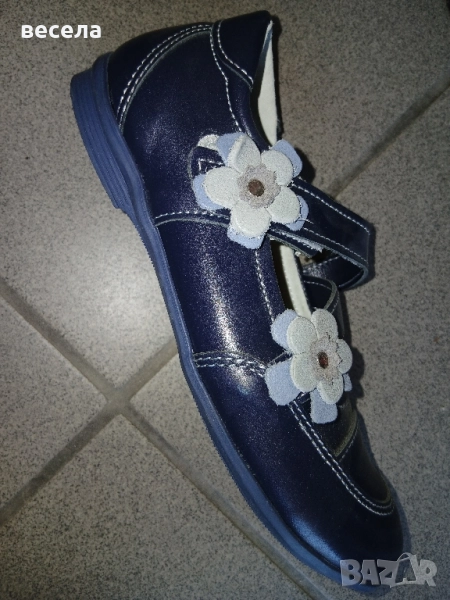 тъмно сини кожени обувки хза момичета със залепване