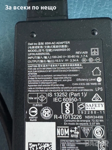 Оригинално зарядно захранване за лаптоп Dell 19.5V 3.34A, зарядно dell, снимка 1 - Кабели и адаптери - 51508915 Оригинално зарядно захранване за лаптоп Dell 19.5V 3.34A, зарядно dell, снимка 2 - Кабели и адаптери - 51508915 Оригинално зарядно захранване за лаптоп Dell 19.5V 3.34A, зарядно dell, снимка 3 - Кабели и адаптери - 51508915 Оригинално зарядно захранване за лаптоп Dell 19.5V 3.34A, зарядно dell, снимка 4 - Кабели и адаптери - 51508915 Оригинално зарядно захранване за лаптоп Dell 19.5V 3.34A, зарядно dell, снимка 5 - Кабели и адаптери - 51508915 Оригинално зарядно захранване за лаптоп Dell 19.5V 3.34A, зарядно dell, снимка 6 - Кабели и адаптери - 51508915 Оригинално зарядно захранване за лаптоп Dell 19.5V 3.34A, зарядно dell, снимка 7 - Кабели и адаптери - 51508915 1/7