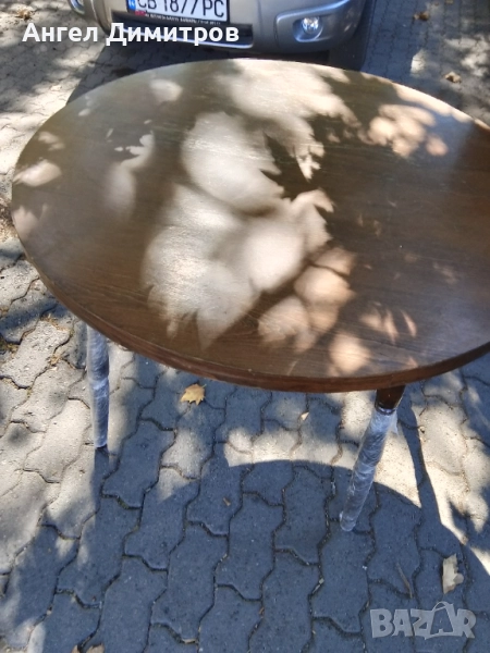 Страхотна дървена кръгла маса , диаметър 100 см , краката са на винт с тях височина 75 см
