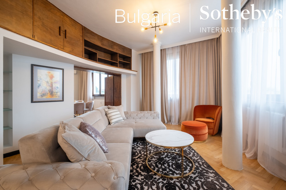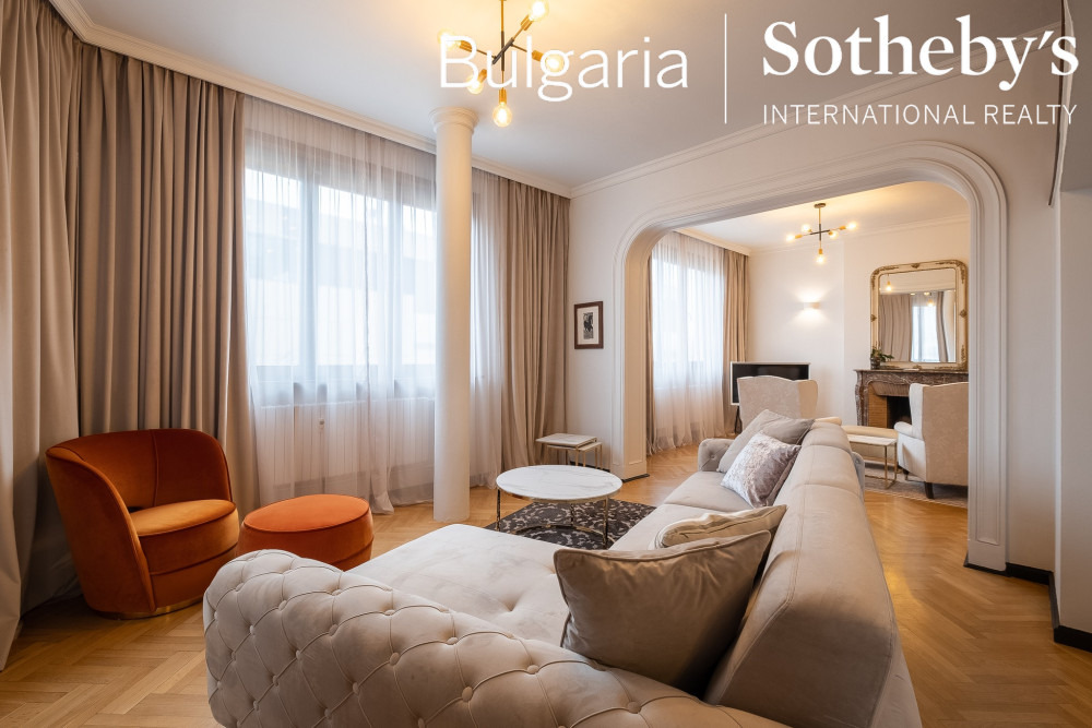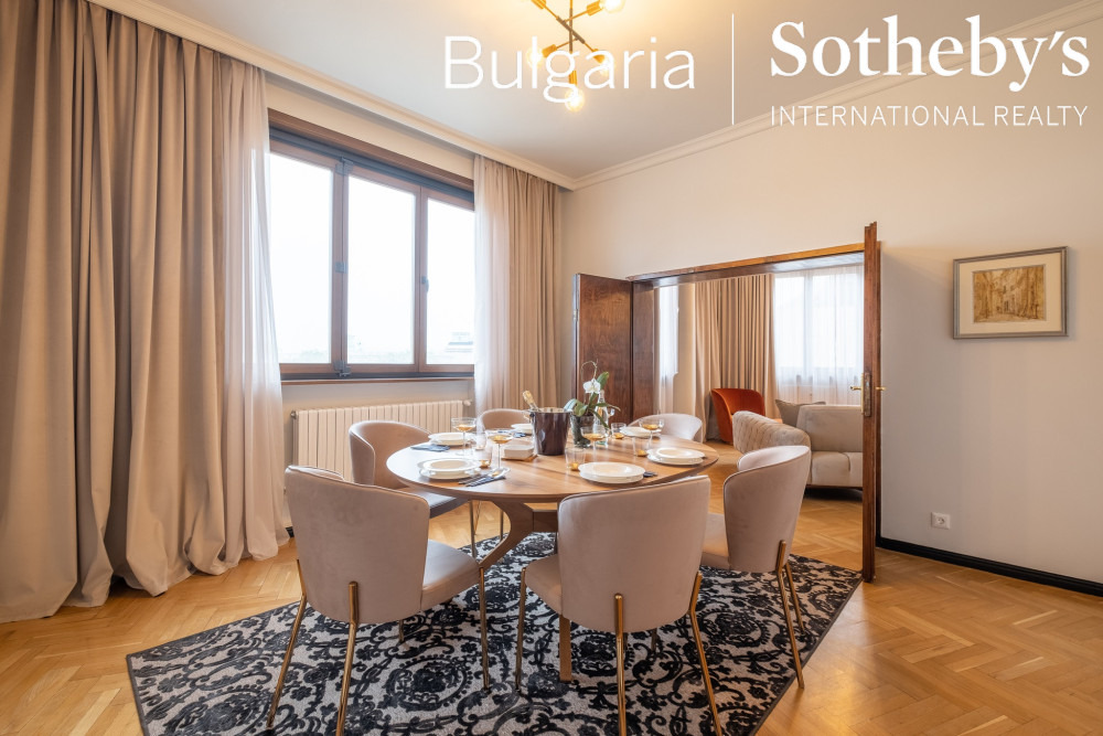 BULGARIA SOTHEBY’S INTERNATIONAL REALTY има удоволствието да представи на Вашето внимание аристократичен пентхаус, разположен в самия център на столицата, на жълтите павета, разкриващ невероятни гледки към емблематични забележителности - паметникът на цар Освободител, сградата на Народното събрание и Храм-паметникът Св. Александър Невски, както и фасадата на Софийския университет.