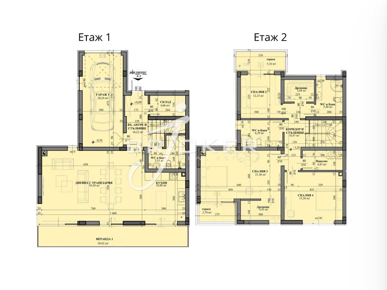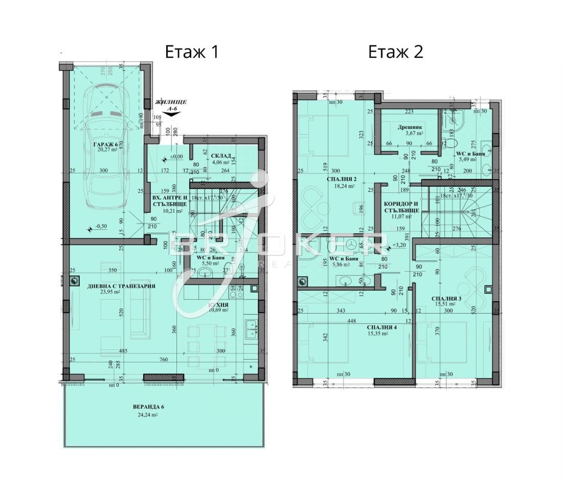 Имоти: Всяка къща разполага с голям просторен хол с трапезария и кухненски бокс с излаз към голяма веранда, баня с WC, склад на първия етаж и три спални две от които с излаз на тераса, две бани с WC, два дрешника, мокро помещение на втория етаж, които осигуряват лично пространство за всеки член от семейството.