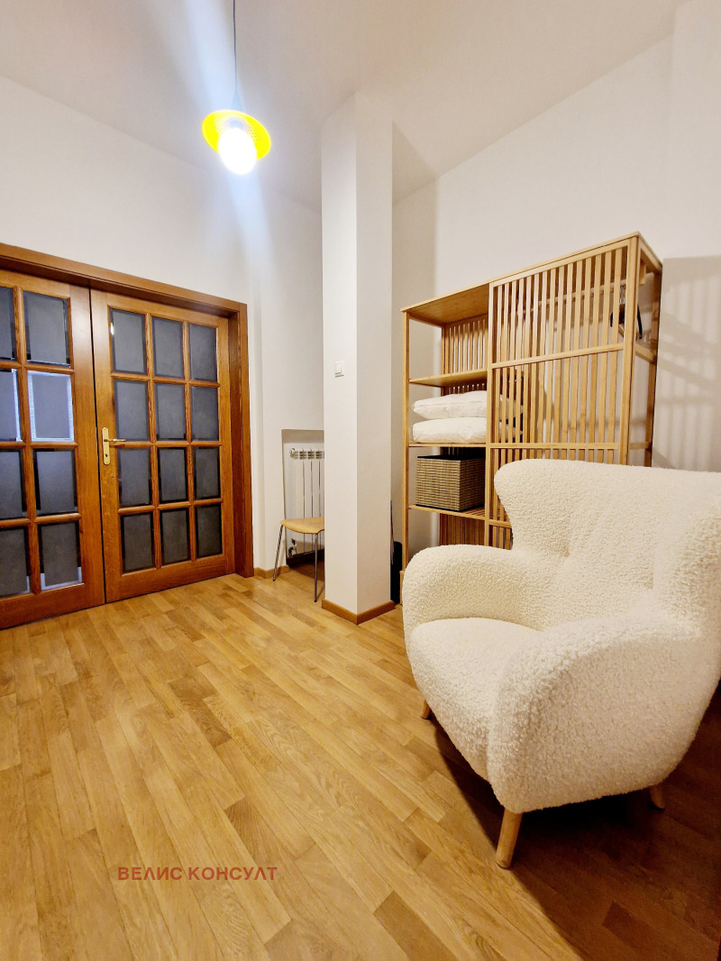 Голям апартамент с 4 жилищни помещения в сърцето на идеалния център, ул. 'Солунска'35-37, изцяло ремонтиран, с нови мебели. Съчетава класика и стил. Разпределение: голяма и просторна дневна, голяма и просторна спалня с гледка към вътрешен двор, вестибюл/кабинет между спалнята и дневната, самостоятелна напълно оборудвана кухня, баня и отделна тоалетна, 2 балкона. Хоум офис е възможен навсякъде в жилището. Изложение С/Ю - към ул. 'Солунска' и към вътрешен двор. 5 мин. от метрото. Допускат се наематели с котка или дребно куче по преценка. За контакти - Ани 0888 641 404