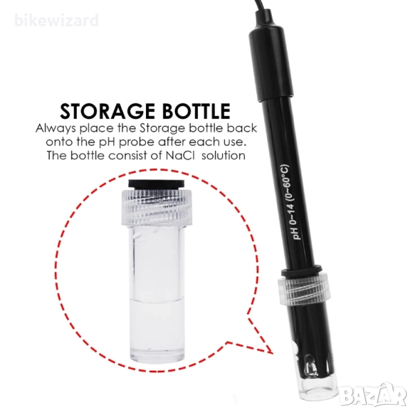 pH електрод с BNC гнездо сонда 300cm кабел 0-14pH за pH метър, pH контролер pH устройство → Обява 51509762
