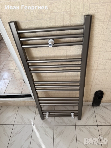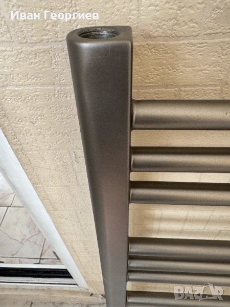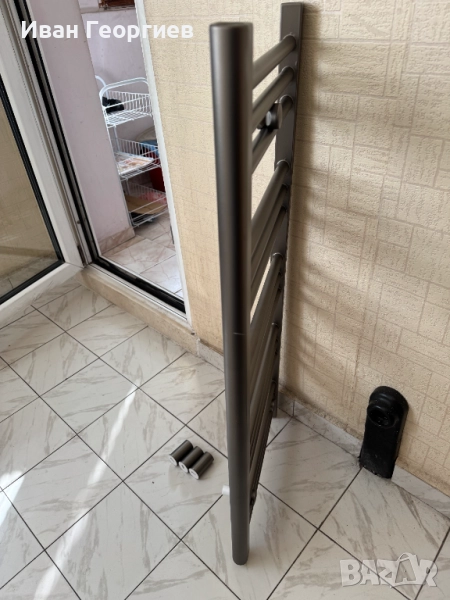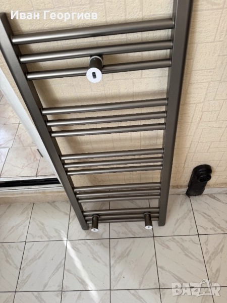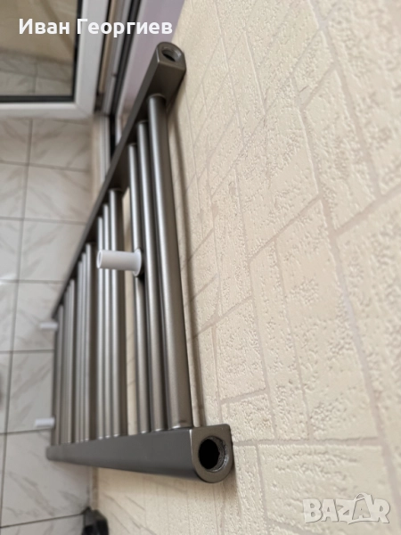 Продавам нова Алуминиева лира за баня, допълнително боядисана в сив цвят - габарит 40х90 см - 426W. Купувана е бяла, като след това е боядисвана допълнително. Комплекта е виден на снимките. При пренасянето има две драскотини, които са показани на отделни кадри.