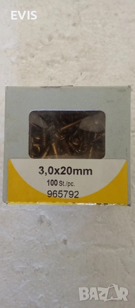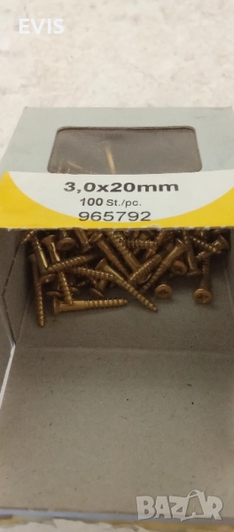 Винтове за дърво с месингово покритие 3х20mm, снимка 1 - Железария - 51510164 Винтове за дърво с месингово покритие 3х20mm, снимка 2 - Железария - 51510164 Винтове за дърво с месингово покритие 3х20mm, снимка 3 - Железария - 51510164 Винтове за дърво с месингово покритие 3х20mm, снимка 4 - Железария - 51510164 1/4