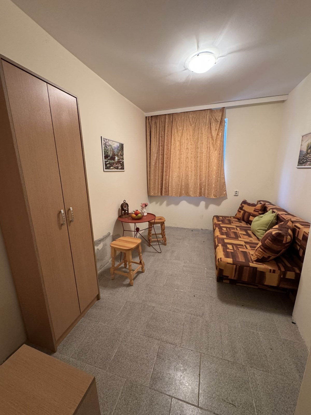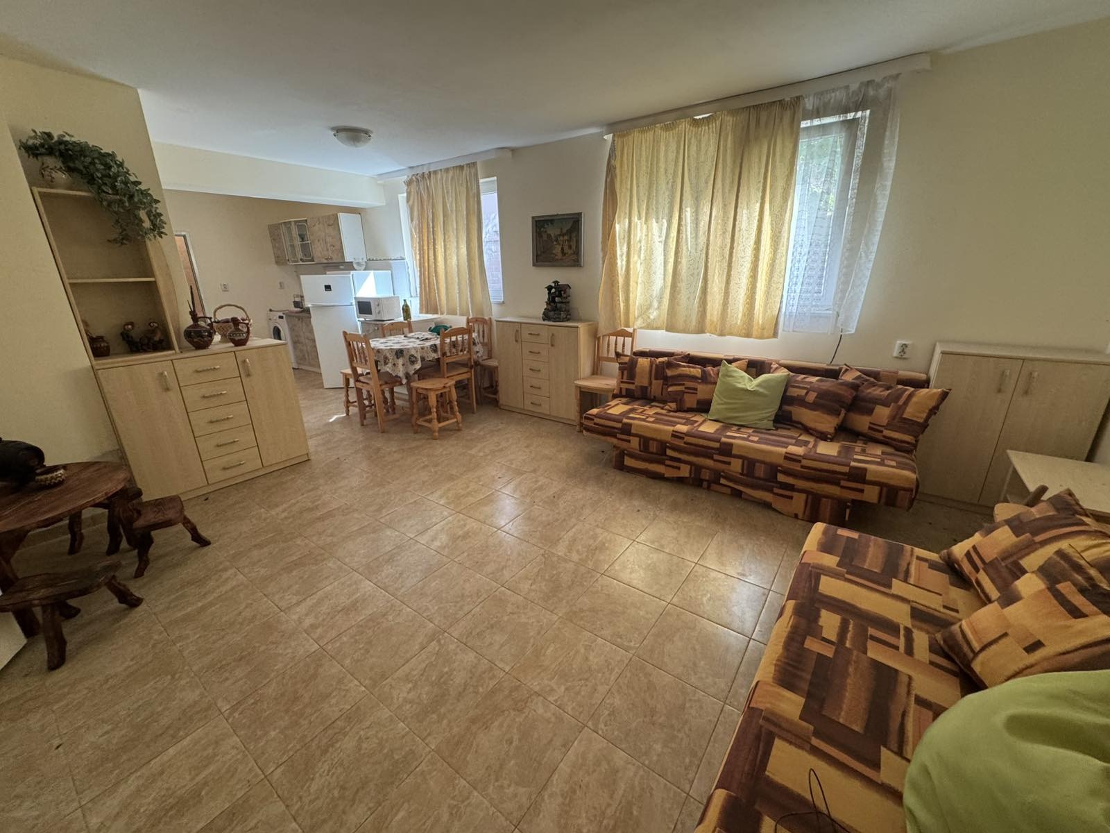 Малък двустаен апартамент: кухня с трапезария, спалня, баня с тоалетна