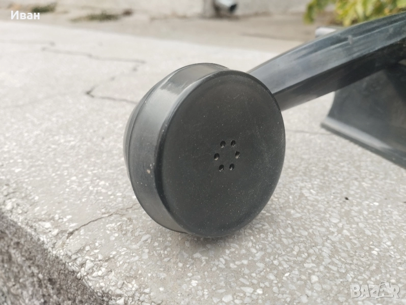 Цена 60 лв Първият български домофон произведен в края на 50-те години в Слаботоковият завод в София - ,,Кл. Ворошилов“. Той е бакелитов и с текстилен кабел, черен и тежък