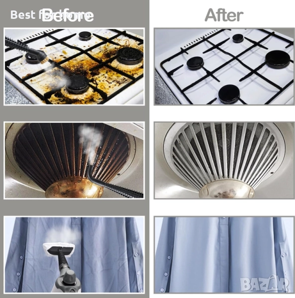 Парочистачката нагрява, за да произведе пара с висока температура 110°C (230°F), за да почисти замърсявания, прах, мазнини и други. Направете дома си като нов.