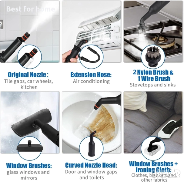 【Многофункционални приложения】: Идеална за дезинфекция и стерилизиране на детски площадки, почистване на бани, премахване на акари в гардероби, почистване на интериора на автомобили и дезинфекция на легла за домашни любимци. Една машина за множество цели, без задънени улици. Парочистачката С подобрени функции за безопасност, предпазна ключалка на дръжката и предпазен капак отгоре, можете да бъдете сигурни, че парочистачката дава приоритет на безопасността ви при употреба.