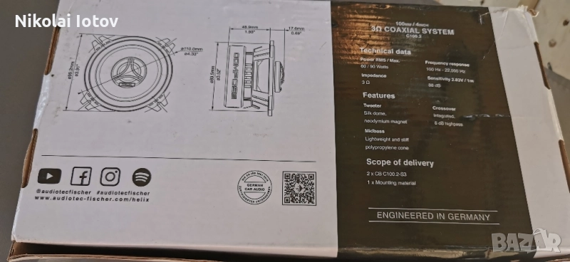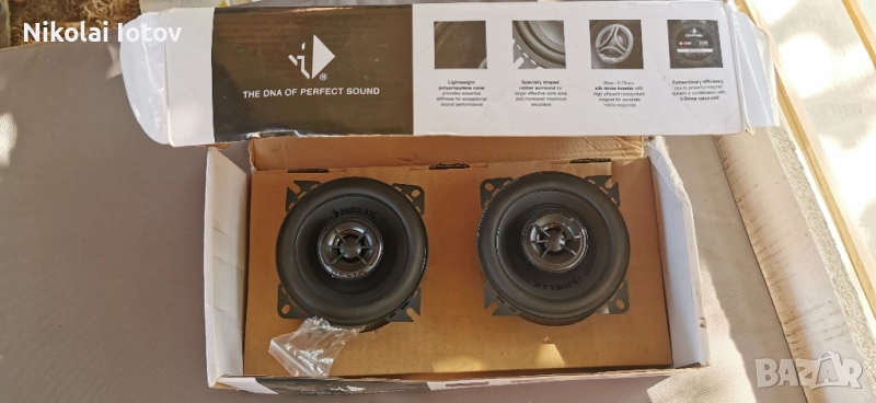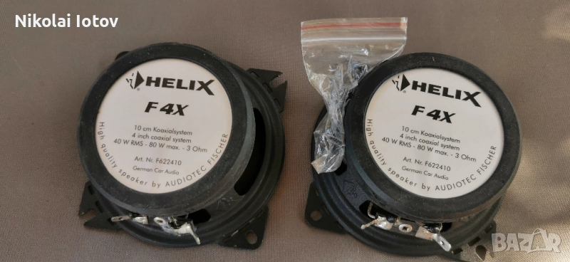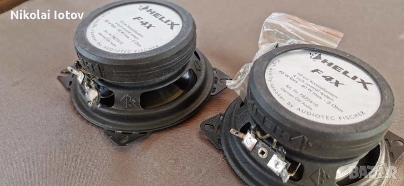 Продават се горепосочените двулентови авто коаксиални говорители на марката Helix неразличими от нови. Модела е F4x, като за българския пазар отговарят на модел CB C100.2 S3 RMS / MAX - 40W / 80W Който е запознат с марката знае, че качеството е на ниво.