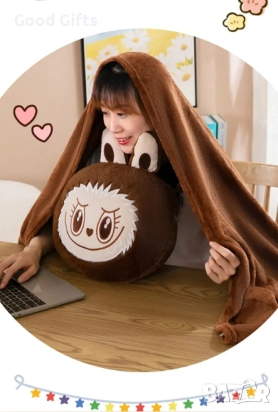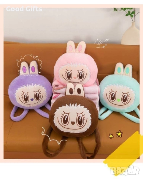 Представяме ви 3в1 плюшена играчка Labubu, която може да се използва като: Мека възглавница за почивка и сладки сънища Пухкаво одеяло, скрито вътре – за топлина по всяко време Раница/чанта, за да го носите със себе си навсякъде