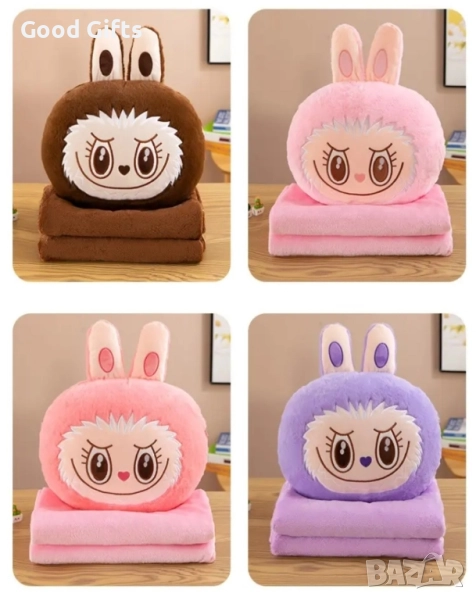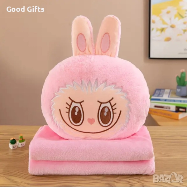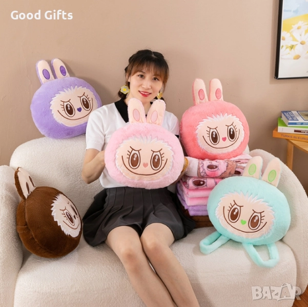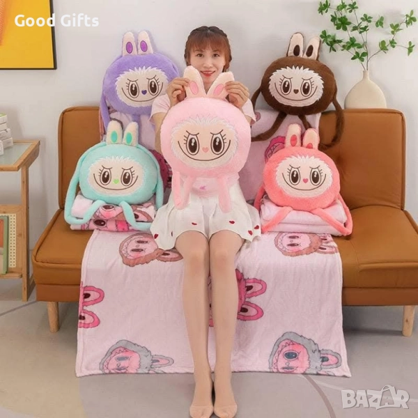 3в1 Плюшена играчка Labubu – одеяло, възглавница и раничка