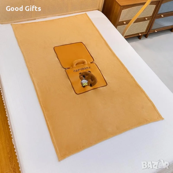 Перфектно за подарък С капибара винаги имаш одеяло, възглавница и чанта в едно – сладка и практична компания!
