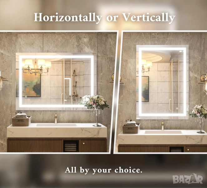 ЛЕД LED огледало за баня, декор за баня, огледало за грим, димируемо, против замъгляване, стенно огледало за баня с осветление, закалено стъкло