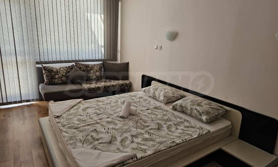 Представяме обзаведен двустаен апартамент за продажба в затворен комплекс с басейн в сърцето на Златни пясъци.