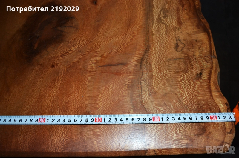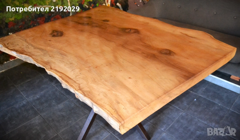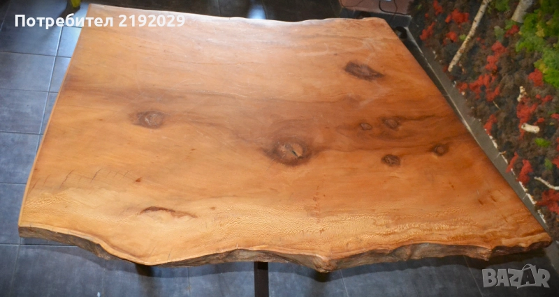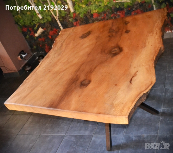 издържлив и красив. С изключително живописен фладер. Цветът варира от почти бяло до светлозлатисто и червеникаво-кафяво до тъмночервеникаво-кафяво. Плота е от цяло парче с естествен „жив ръб“. Масата е изцяло ръчно изработена, като всяка стъпка от процеса е извършена с най-голямо внимание, било то полиране или