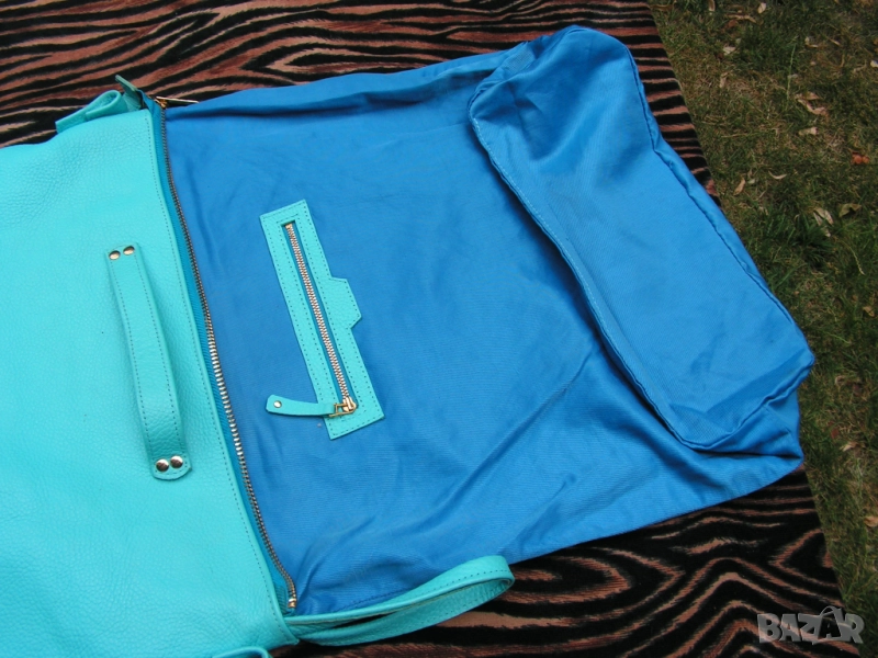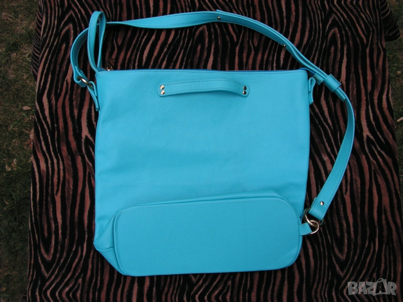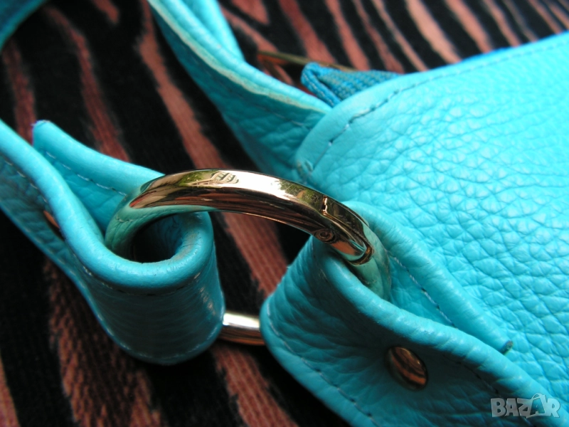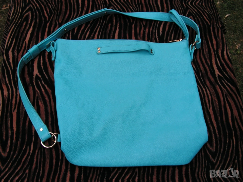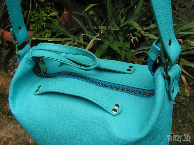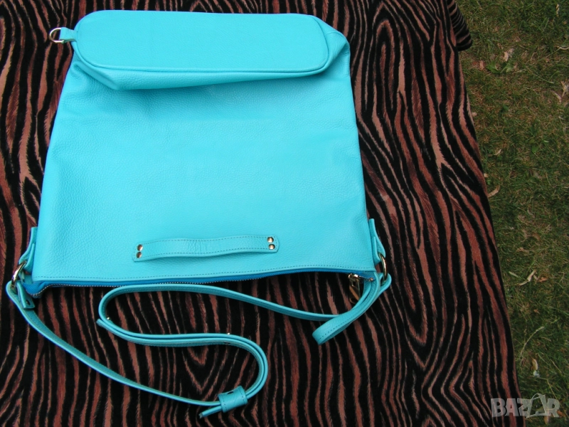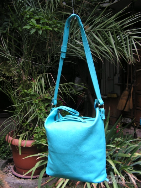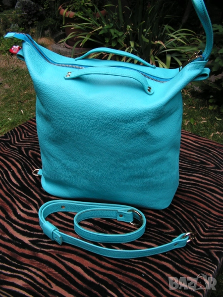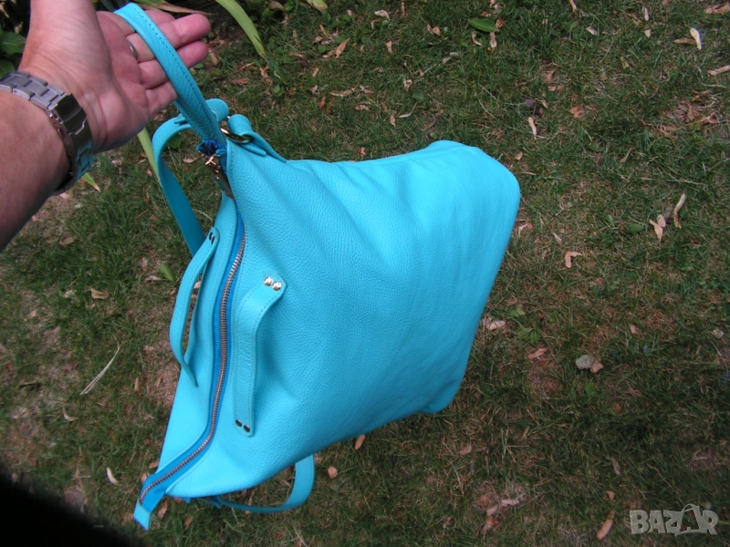 Предлагам нова, изключително практична дамска чанта с ремък, дръжки и отваряеми халки, с възможност за диагонално прикачване на ремъка, при което чантата се носи и на гръб. Синя е на цвят, като целия обков е в златно. Чантата е нова. Купена е за едно ревю. Манекенките я носиха общо 6 минути на две дефилета. Възстановен е