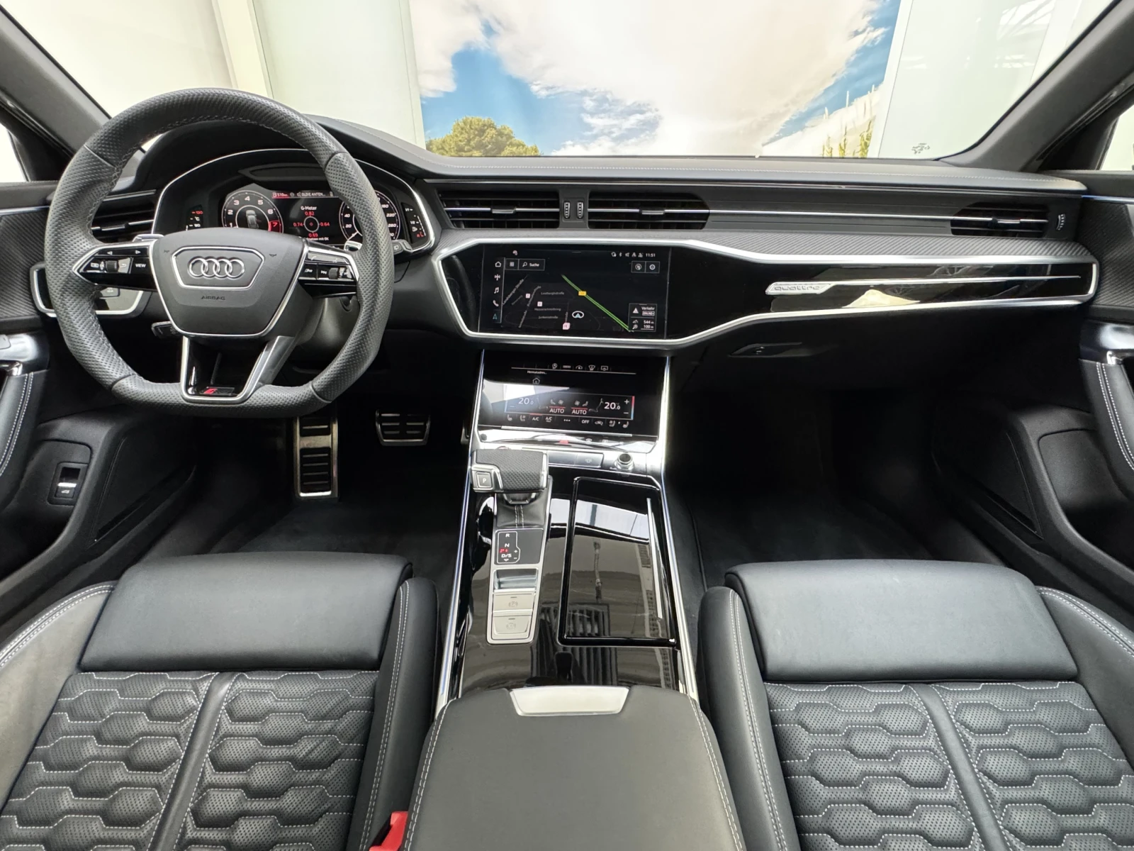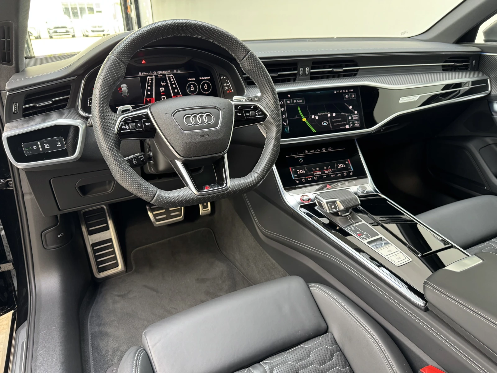 ++ Audi RS6 Performance ++ 5-годишна гаранция на Audi до 17 март 2029 г. Цвят: Mythos Black Metallic Тапицерия: Valcona Black кожа със сив ромбовиден капитон Допълнително оборудване Пакет City Assistance: Система за асистенция при шофиране: 360-градусова цялостна защита (Audi presence 360 ), Система за асистенция при шофиране: Система за защита на пътниците (Audi pre sense Side Assist), Система за асистенция при шофиране: Асистент за кръстовища, Система за асистенция при шофиране: Предупреждение при излизане, Система за асистенция при шофиране: Асистент за кръстосано движение отзад, Система за асистенция при шофиране: Страничен асистент, включително Audi pre sense rear, Система за асистенция при шофиране: Страничен асистент Пакет Tour Assistance: Система за асистенция при шофиране: Разпознаване на пътни знаци, Система за асистенция при шофиране: Адаптивен круиз контрол с адаптивен контрол на дистанцията, Система за асистенция при шофиране: Асистент за спешни случаи с автоматично аварийно повикване, Система за асистенция при шофиране: Асистент за прогнозна ефективност, Система за асистенция при шофиране: Асистент за избягване, Система за асистенция при ляв завой, Система за асистенция при шофиране: Адаптивен асистент за шофиране Audi connect key Електрически външни огледала. Регулируемо, отопляемо и сгъваемо, с автоматично затъмняване и памет, външно огледало с функция за активиране при затваряне на бордюра, дясно Bluetooth система за свободни ръце с гласово разпознаване (Audi Phone Box) Матово сива лайсна на прозорците Head-up дисплей Интериор: Декоративни инкрустации от карбонови влакна Интериор: Кожени интериорни елементи, горни и долни Цифров инструментален панел (виртуален кокпит plus) с RS дизайн Комфортен ключ със сензорно контролирано отключване на задната врата и алармена система против кражба (отваряне + затваряне) Алуминиеви джанти 10. 5x22 (5-лъчеви, матово сиви) Матрични LED фарове с лазерна светлина, LED задни светлини (pro) с динамично осветление и динамични мигачи, система за измиване на фаровете (SRA) Металическо покритие Панорамен покрив (преден електрически, заден фиксиран) Камера за задно виждане Предавател за отварачка на гаражна врата (интегриран) Електрическо заключване на вратите Тапицерия на седалките: Кожа Valcona, перфорирана ватирана структура тип пчелна пита , вентилирана RS спортни седалки, предни седалки с вентилация Аудио система Bang & Olufsen Спорт изпускателна система Допълнително отопление Задно тонирано стъкло (затъмнено стъкло)