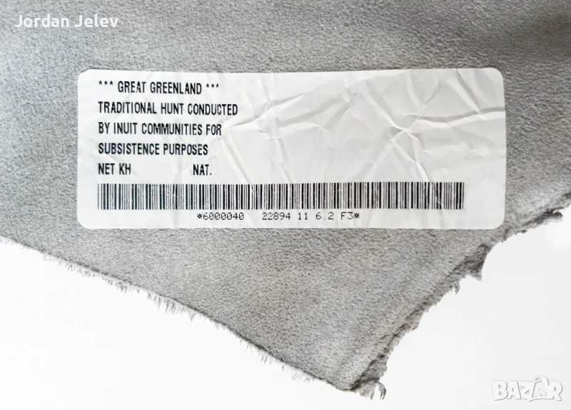 Произход и законност: Кожата е придружена от официален печат, удостоверяващ нейния произход от традиционен лов, извършен от инуитски общности в Гренландия, за целите на прехрана. Този сертификат гарантира, че кожата е получена по законен и етичен начин, съгласно международните разпоредби, които защитават традиционния поминък на местното население.