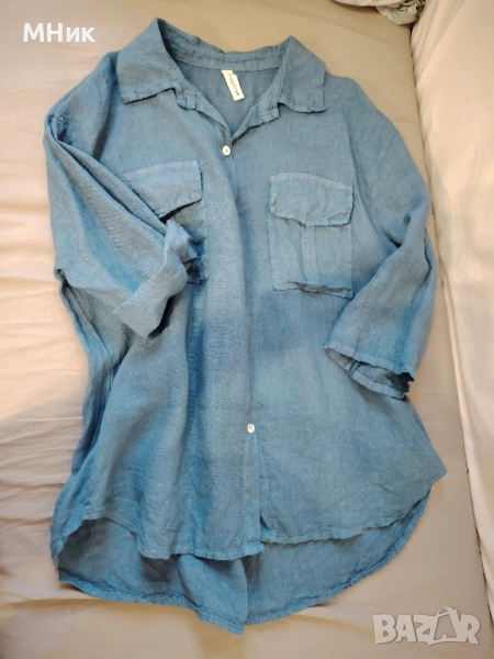 Дамска риза, лен, тъмно синя, снимка 1 - Тениски - 51514399 Дамска риза, лен, тъмно синя, снимка 2 - Тениски - 51514399 1/2
