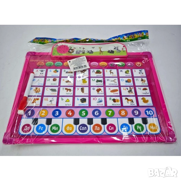 Има различни функции, на задната страна може да се пише с маркер, който е включен в комплекта.