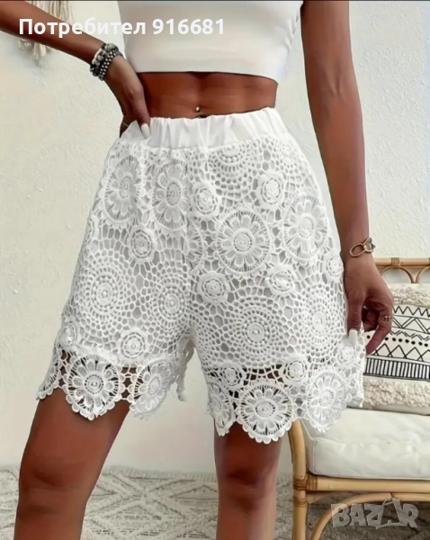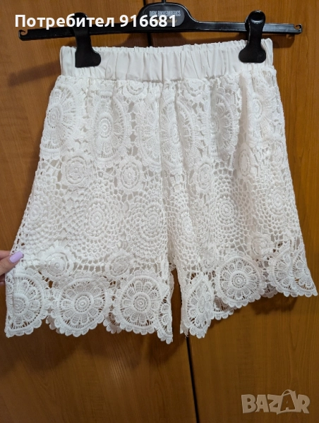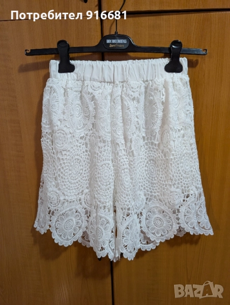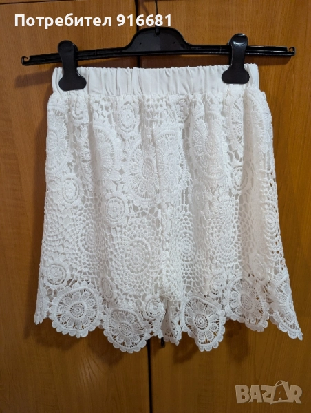 Продавам дамски къси гащи, дантелени в бял цвят, чисто нови, размер S. Дължина 45 см. Изпращам с Еконт или Спиди, с преглед и тест.