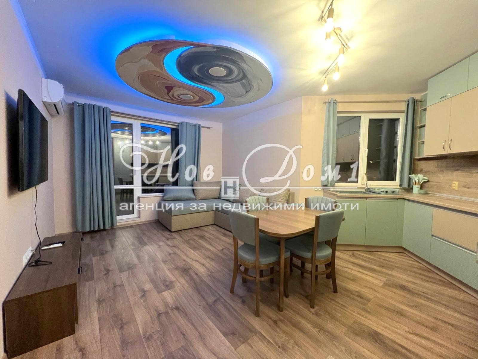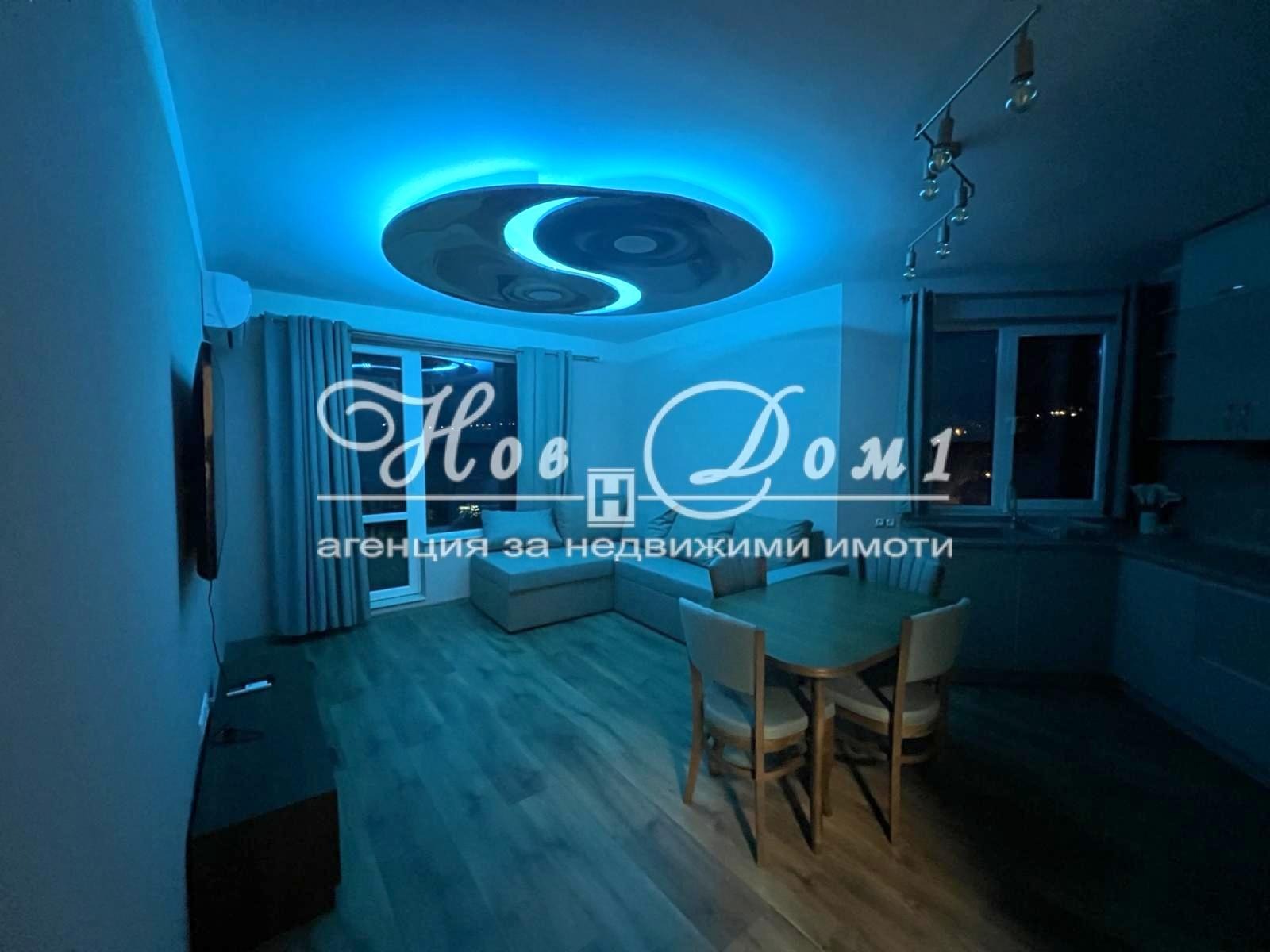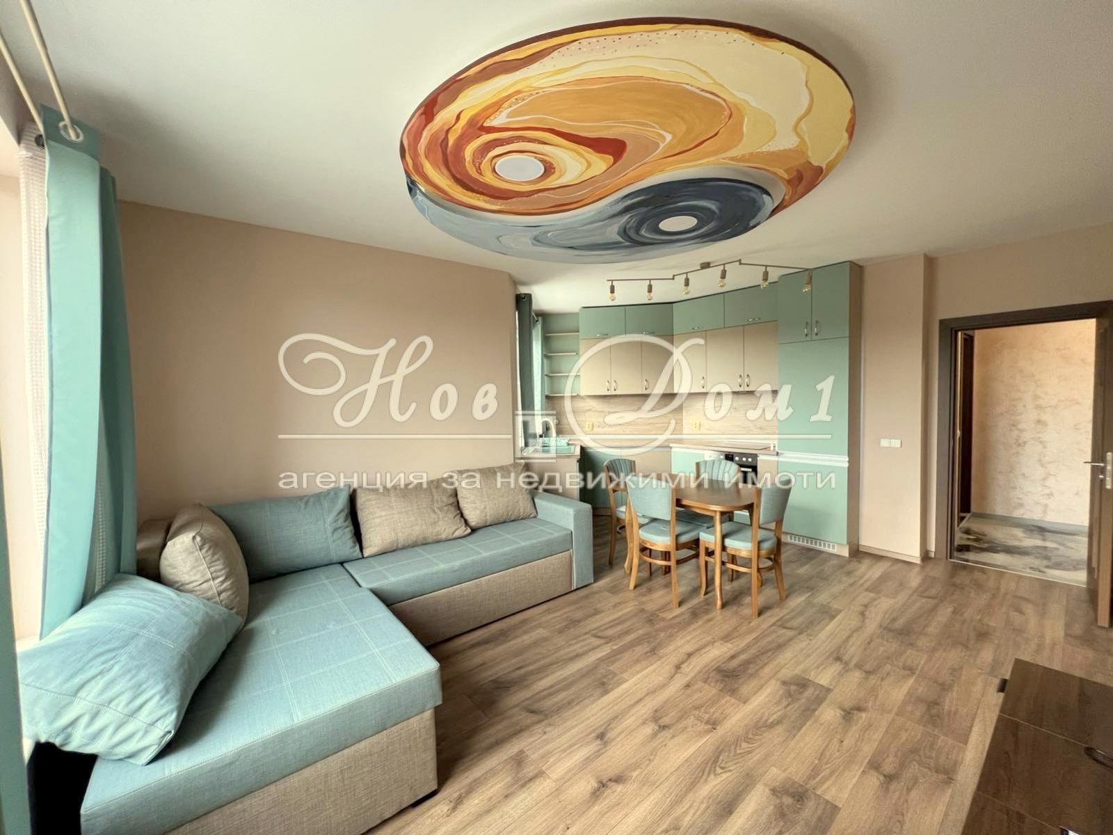 Имотът представлява: голям коридор; просторна всекидневна с кухненски бокс, с излаз на самостоятелен балкон; широка спалня с балкон; комбиниран санитарен възел. Жилището се намира на среден етаж с прекрасна панорама и южно изложение. Обзаведен дизайнерски, с паркомясто в наемната цена. Първи наематели.