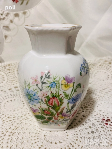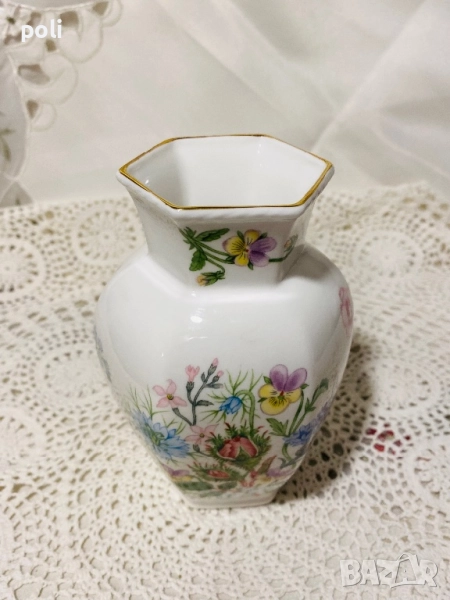 Ваза от костен порцелан на Aynsley “ Wild Tudor “. Височина 13,5 см . Цена 30 лв/15,34€