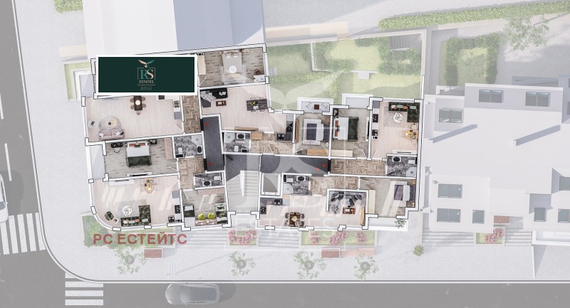 Сградата е разположена на тиха и спокойна улица сред зеленина, в кв. Стрелбище , в близост до кръстовището с ул. Кестенова гора . Районът е отлично развит и осигурява лесен достъп до основните булеварди България и Гоце Делчев . В непосредствена близост се намират училище 126 ОУ, супермаркет Фантастико , различни търговски обекти и спирки на градски транспорт, което прави местоположението изключително удобно както за живеене, така и за инвестиция.