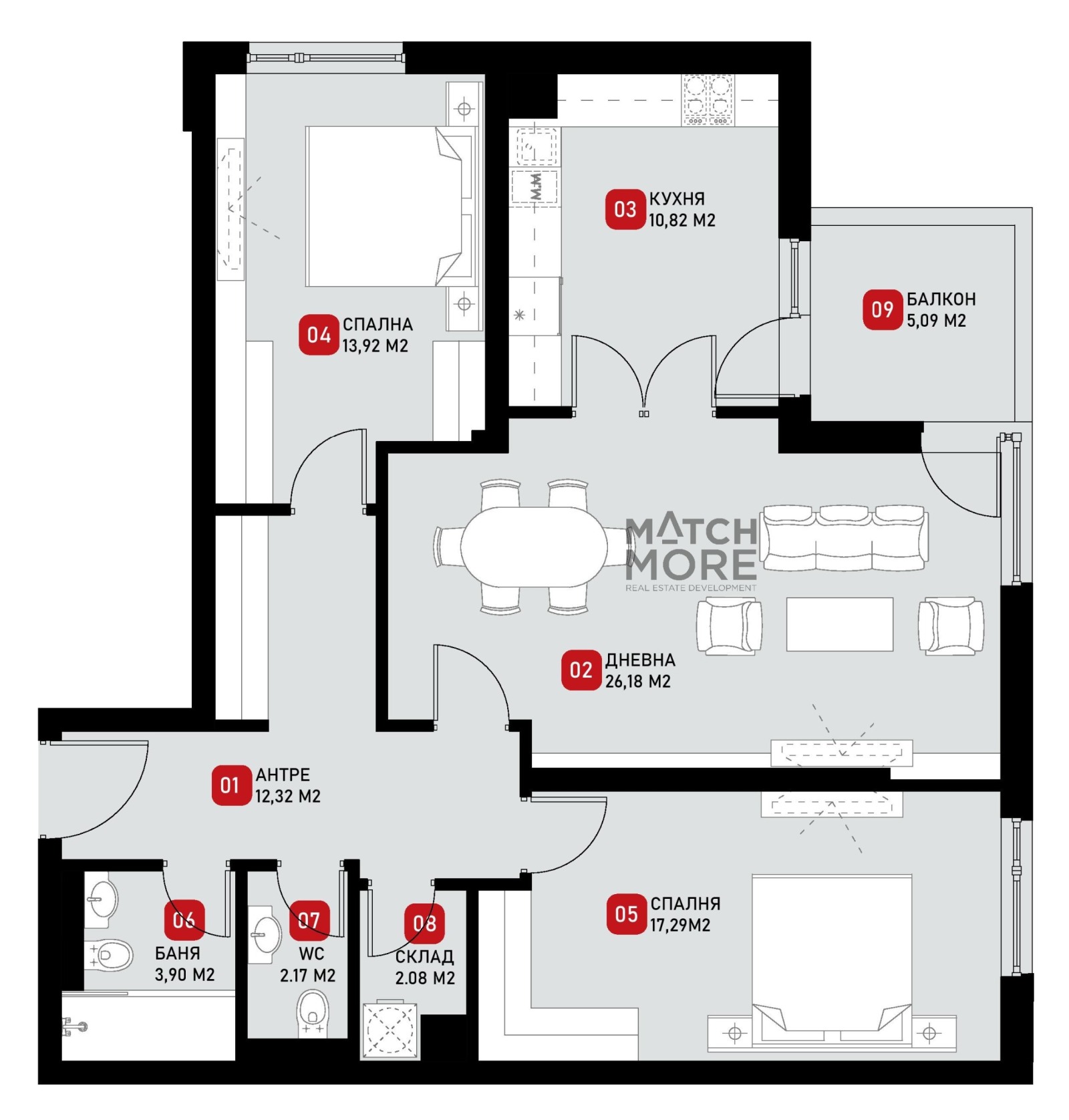За повече информация за конкретния апартамент, сградата и други проекти, моля, посетете сайта ни: www.matchmore.eu или свържете се с нас на телефон: 0878877767