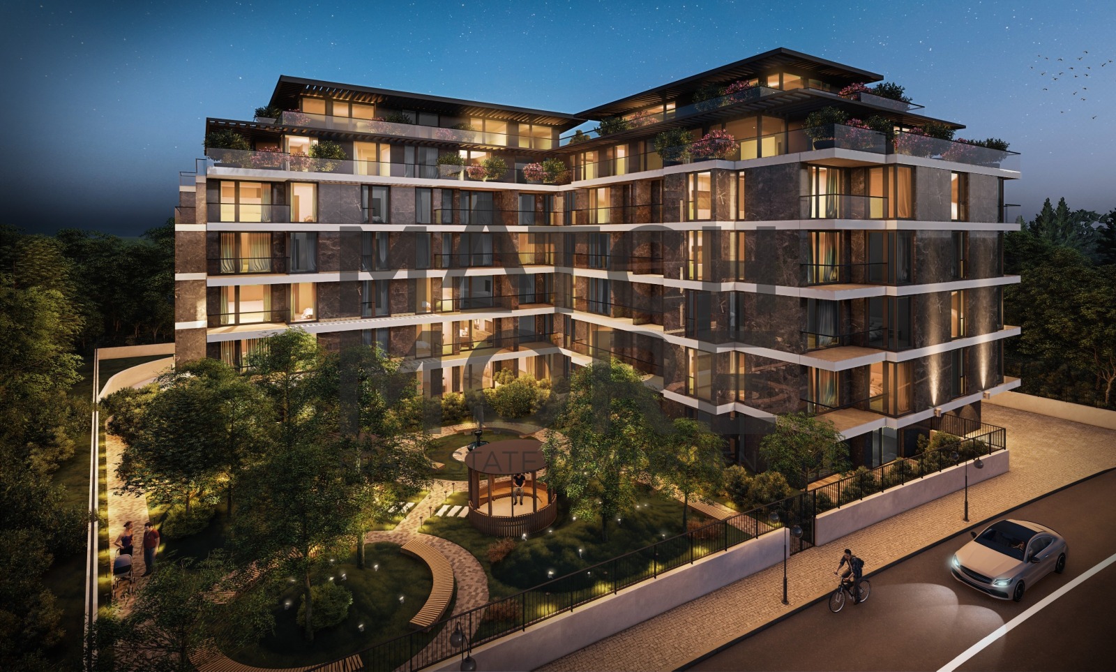 Проектът предлага просторни жилища, основно тристайни апартаменти, като изложенията им са ориентирани на юг, югоизток и югозапад, с гледка към планина Витоша, жилища тип пентхаус с 360 градуса панорамни гледки и са разположени на 6-ти и 7-ми жилищен етаж, двустайните жилища са изключително функционални, като повечето от тях са на средните етажи от сградата.
