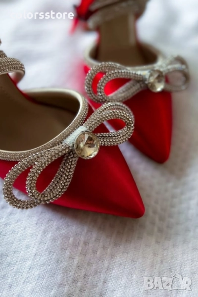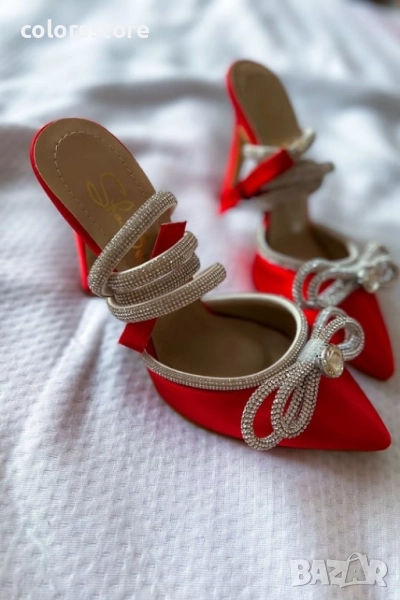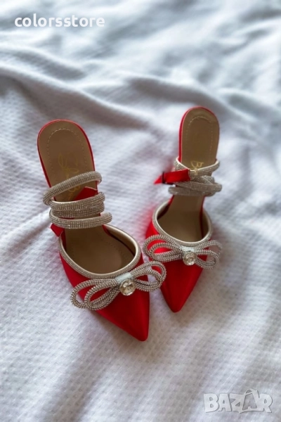 Сандали на ток - червен сатен - BY22