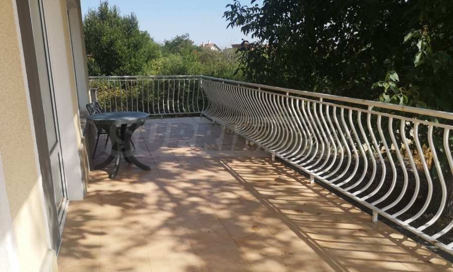 етаж 2: коридор, три спални (едната с дрешник и тераса), две бани с тоалет, складово помещение, тераси с прекрасна гледка.