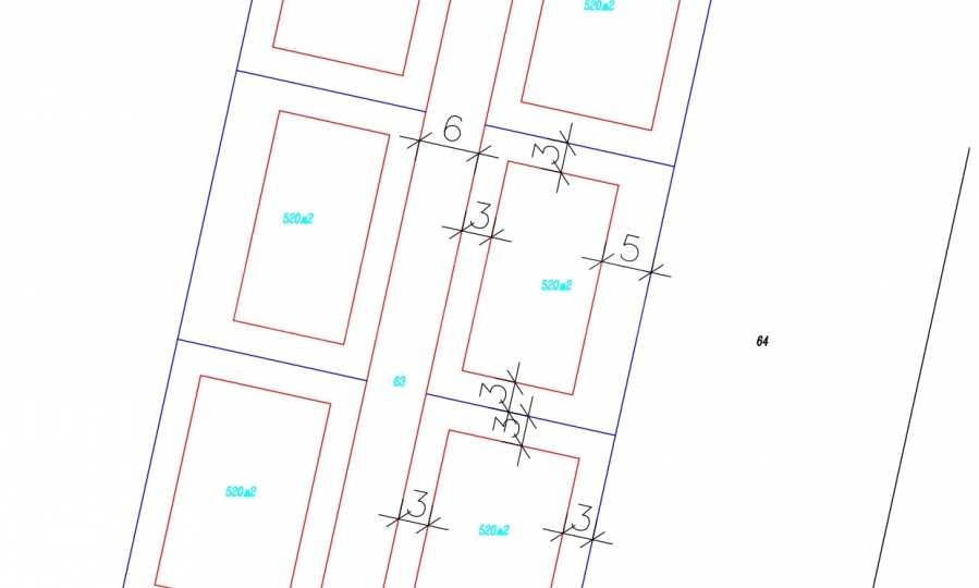 разделен на 6 самостоятелни парцела по 560 кв.м.