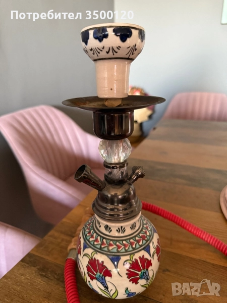 Наргиле, средна големина и ориенталски украски. Минимални следи от употреба. Към него мога да предложа аксесоари. Изпращам с опция преглед.
