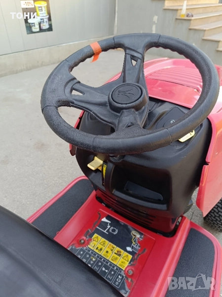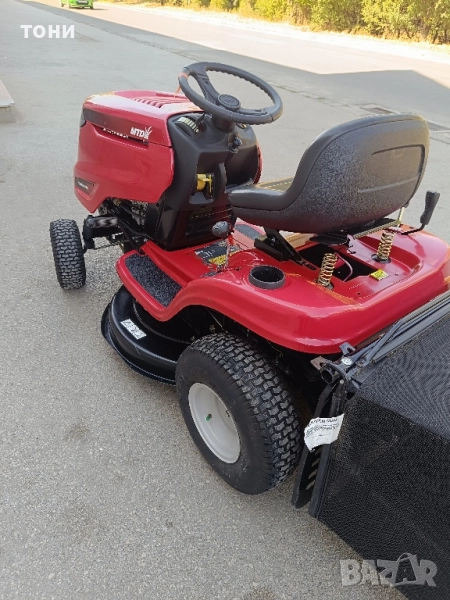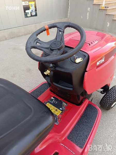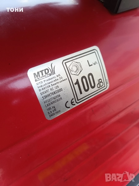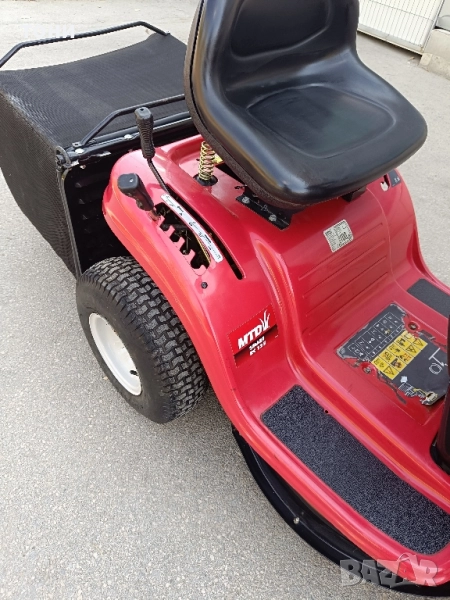 Тракторна косачка MTD,made in Germany.Двигател Briggs Stratton 12.5hp.Косилен апарат с един нож, задно изхвърляне на окосената трева с кош.Пет нива на височина за косене. Стартерно запалване,трябва да се купи нов акумулатор, за тест трактора , може да се запали. Цена 3400лв./1738.39€ Телефон/Viber 0878168500