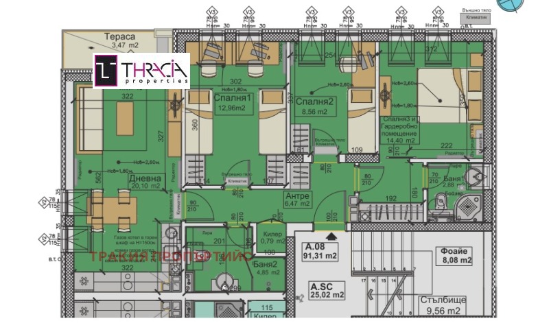 1.АПАРТАМЕНТ А08: 4 стаен със ЗП от 91,31 м2, РЗП-110,21 м2, на 4 етаж, с югозападно изложение. Състои се от: