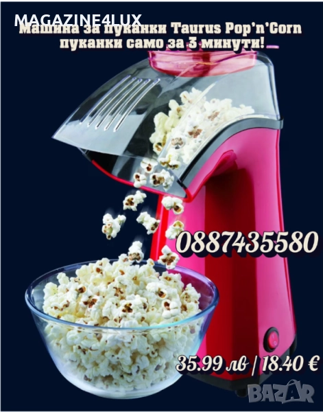 ΠΠ°Π±ΡΠ°Π²ΠΈ Π·Π° ΠΌΠ°Π·Π½ΠΈΡΠ΅ ΡΠΈΠ³Π°Π½ΠΈ ΠΈ Π±Π°Π²Π½ΠΎΡΠΎ Π³ΠΎΡΠ²Π΅Π½Π΅! Taurus PopβnβCorn ΡΠΈ ΠΏΡΠ΅Π΄Π»Π°Π³Π° Π±ΡΡΠ·, ΡΠΈΡΡ ΠΈ Π·Π΄ΡΠ°Π²ΠΎΡΠ»ΠΎΠ²Π΅Π½ Π½Π°ΡΠΈΠ½ Π΄Π° ΠΏΡΠΈΠ³ΠΎΡΠ²ΠΈΡ Π»ΡΠ±ΠΈΠΌΠΈΡΠ΅ ΡΠΈ ΠΏΡΠΊΠ°Π½ΠΊΠΈ β Π±Π΅Π· ΠΌΠ°ΡΠ»ΠΎ, Π±Π΅Π· ΡΡΠΈΠ»ΠΈΠ΅.