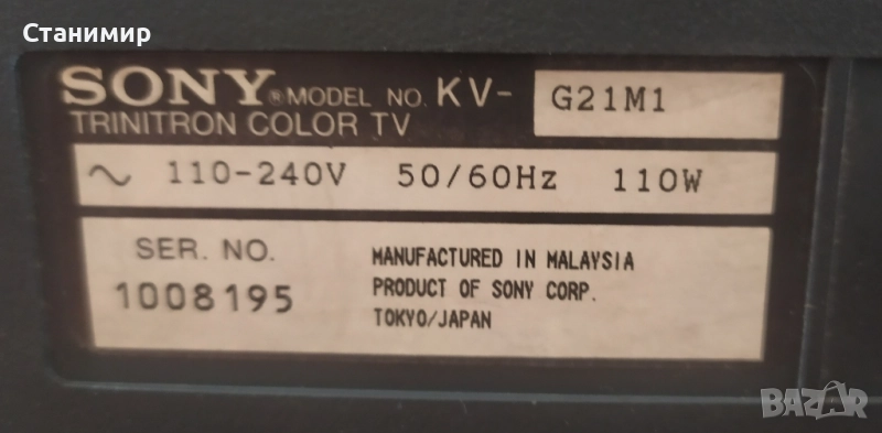Телевизор SONY Trinitron KV-G21M1 - за части, снимка 1 - Телевизори - 51521377 Телевизор SONY Trinitron KV-G21M1 - за части, снимка 2 - Телевизори - 51521377 Телевизор SONY Trinitron KV-G21M1 - за части, снимка 3 - Телевизори - 51521377 Телевизор SONY Trinitron KV-G21M1 - за части, снимка 4 - Телевизори - 51521377 Телевизор SONY Trinitron KV-G21M1 - за части, снимка 5 - Телевизори - 51521377 1/5