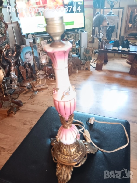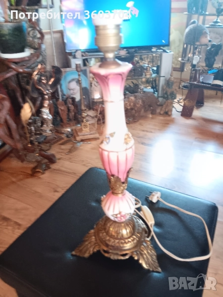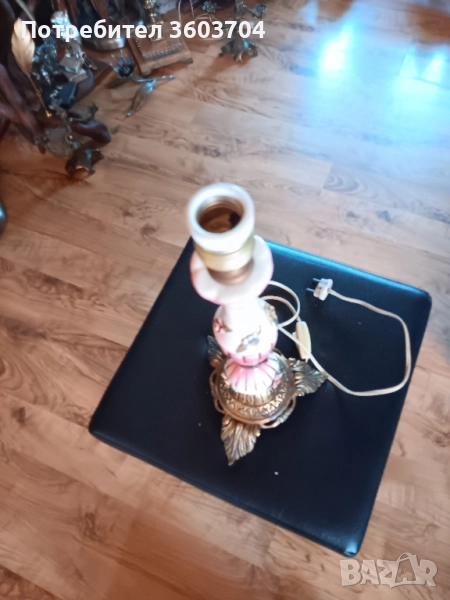 настолна лампа от 18 век основата е изработена от масивен месинг добавям към него порцион ръчно рисуван сорнаменти помпата е в идеално състояние и работи остава някой който разбира от изкуство и хубави неща да ѝ се радва Благодаря ви за вниманието Разгледайте и другите мои обяви може нещо друго да си хареса ти благодаря височина 42 см на 15 см