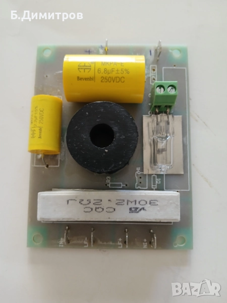 Честота на срез 3600hz 18 db на октава,8 омаВходяща мощност до 500w Защитна лампа.Висококачествени кондензатори!