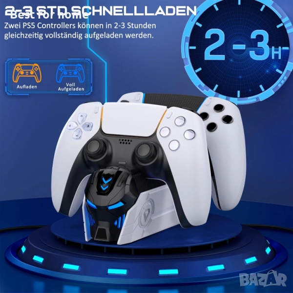 Уникален дизайн: уникалният дизайн на тази станция за зареждане на контролер за PS5 е вдъхновен от естетиката на роботизирана каска и придава на вашата геймърска конфигурация нотка футуризъм и атмосфера на супергерой. Не пропускайте възможността да заредите контролерите си стилно и да направите впечатление с уникалния дизайн. Ако познавате собственик на PS5, който има страст към уникалните геймърски аксесоари, тази станция за зареждане е идеален подарък.