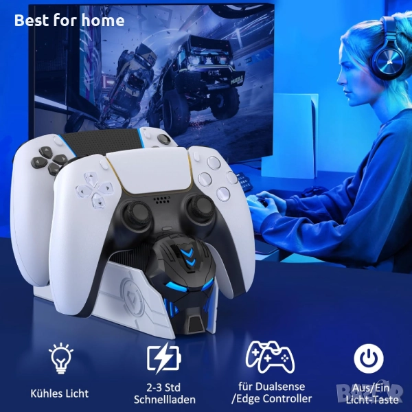 Станция за зареждане на контролер GAMSINGY PS5, Аксесоари за PS5 Зарядна станция за Dualsense Wireless/Edge контролер, Зарядна станция за контролер за Playstation 5, Аксесоари Зарядна станция за PS5.