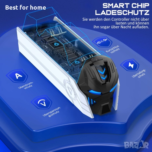 Защита при зареждане и индикатор за охлаждане при зареждане: в зарядната станция за PS5 има интелигентен защитен чип, който удължава живота на контролера. Няма да претоварите контролера за PS5 и дори можете да го зареждате през нощта. Индикаторът за охлаждане на зарядната станция за PS5 ясно показва състоянието на зареждане. Оранжевият индикатор за охлаждане на зарядната станция показва, че контролерът за PS5 се зарежда. Синята светлина на зарядната станция показва, че контролерът за PS5 е напълно зареден или в режим на готовност.