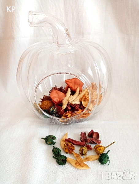 Голям декоративен стъклен терариум с формата на тиква → Обява 51523915